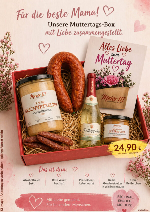 Unsere Muttertags-Box ist nicht nur eine feine Auswahl an Spezialitäten, sondern auch eine besondere Möglichkeit, jemandem wirklich eine Freude zu machen.